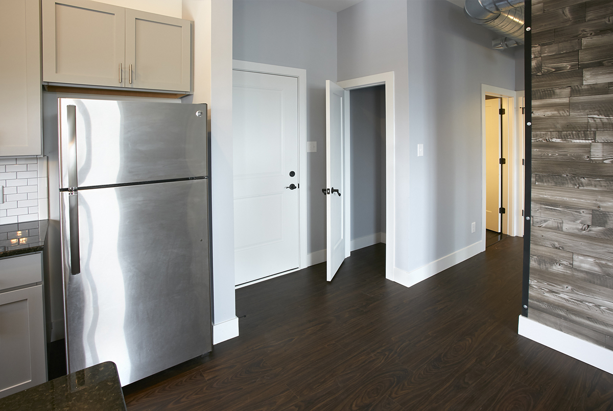 Newly built in 2016, Merchants Lofts III offers contemporary architecture, plenty of windows, exposed duct work with central air and barnwood finishes as well as beautiful hardwood floors, tile bathrooms, granite countertops and stainless steel appliances. All six units feature private outdoor patios or decks.
